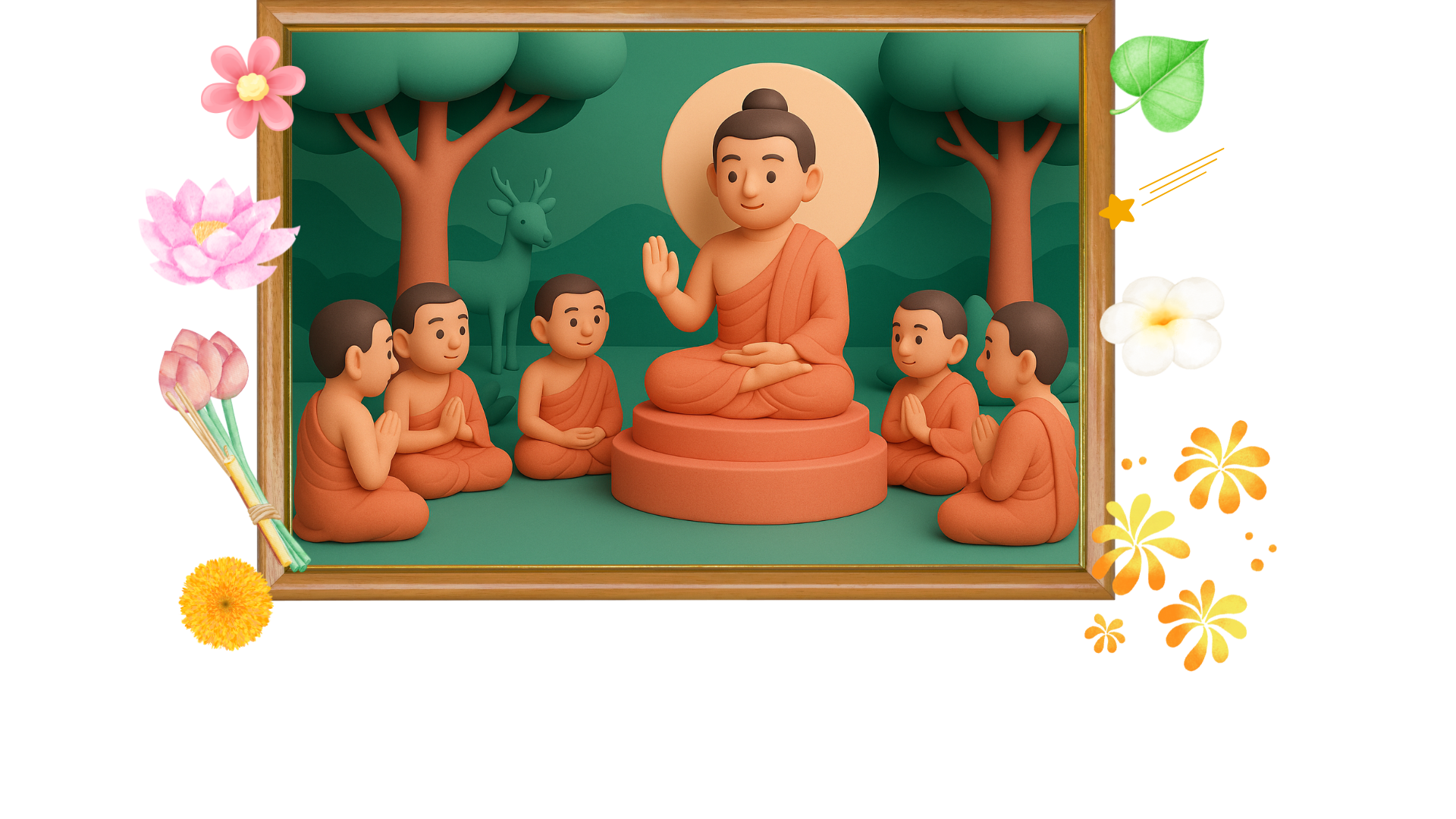 2. แสดงแก่ปัญจวัคคีย์ทั้ง 5 ณ ป่าอิสิปตนมฤคทายวัน เมืองพาราณสี